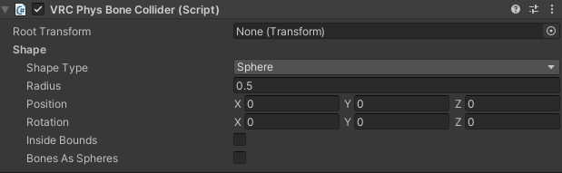 定义了一个会影响 Physbones 的碰撞器 (前提是对应的 Physbone 有正确地配置了碰撞选项)。