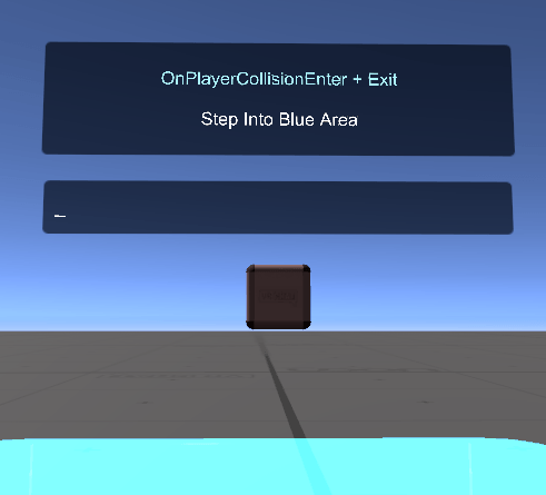 This setup demonstrates how to trigger and respond to the OnPlayerCollisionEnter/Exit events, which are triggered when a Physics object moves into a player's collider.