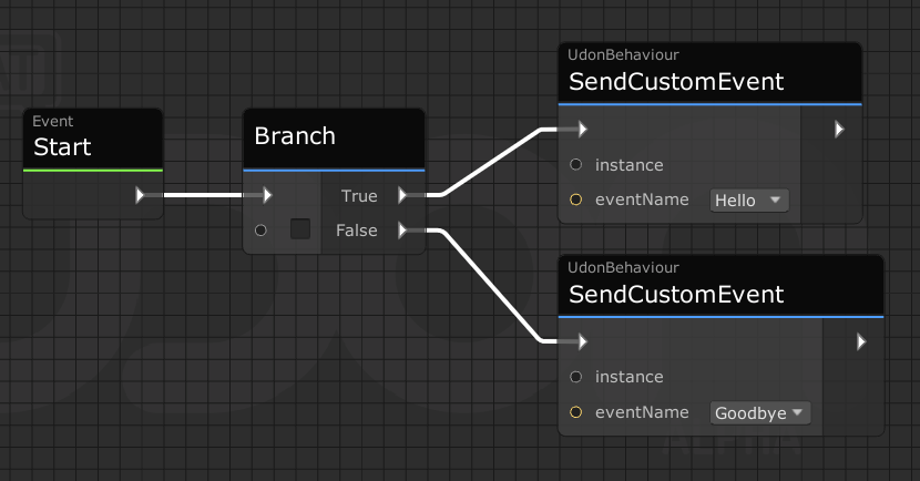 Start事件会在世界加载的时候触发- 在下一步触发的 “分支 (Branch)” 节点中。会通过复选框的值决定是触发 True 还是 False 路径。