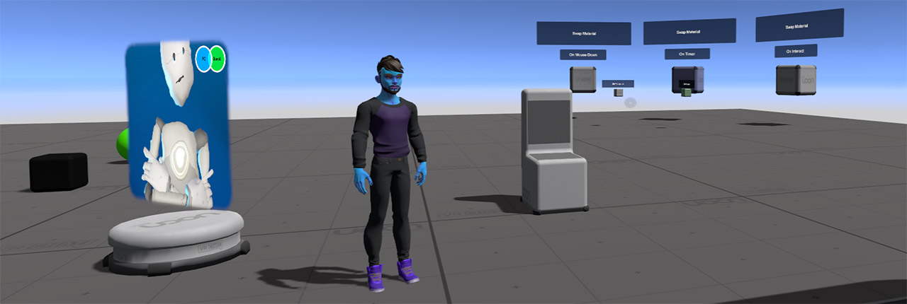In order to test Synced Variables and Custom Network Events, you need multiple people in the same world. The easiest way to accomplish this is to use the Builder tab to launch multiple clients. Close the VRChat client window you just launched if it's still open, and change the 'Number of Clients' to 2, then press Build and Test again. This time, Unity will open up two VRChat clients, with your same avatar in both of them. You can swap between the windows to control your two avatars, and even see yourself talking in both of them. Try playing with the Synced Variables area. The first avatar that loads in will be the Master of the instance and therefore Owner of those GameObjects, so they will be able to update the UI Elements, whereas the second avatar can only see the updates. The one exception in this scene is the 'SyncButtonAnyone' which transfers ownership to whoever clicks on it.